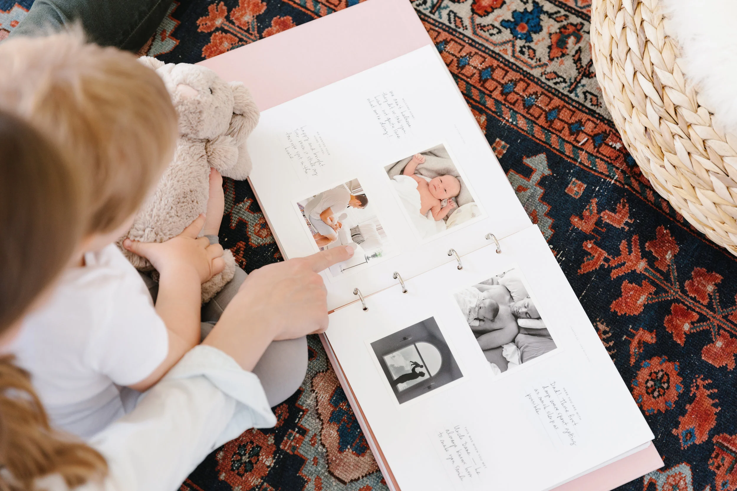 Armed with these desires we set out to create a book that was not only beautiful, but easy to complete. Simple prompts and fun fill-in-the-blank templates take minutes to fill out. We made the decision to include a pen, sheets of adhesive, and a credit for a set of 25 prints to make starting that much easier.